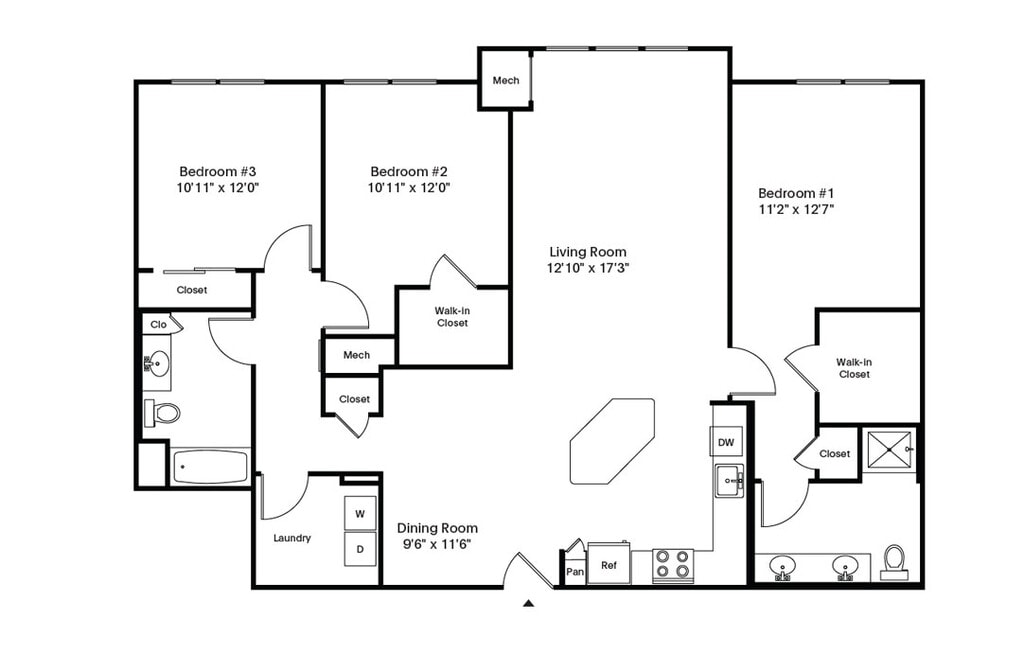 Modelo de apartamento: A3$2,2891 Dormitorio, 1 Baño, 685-690 sq ftDisponible December 3, 2025![]()