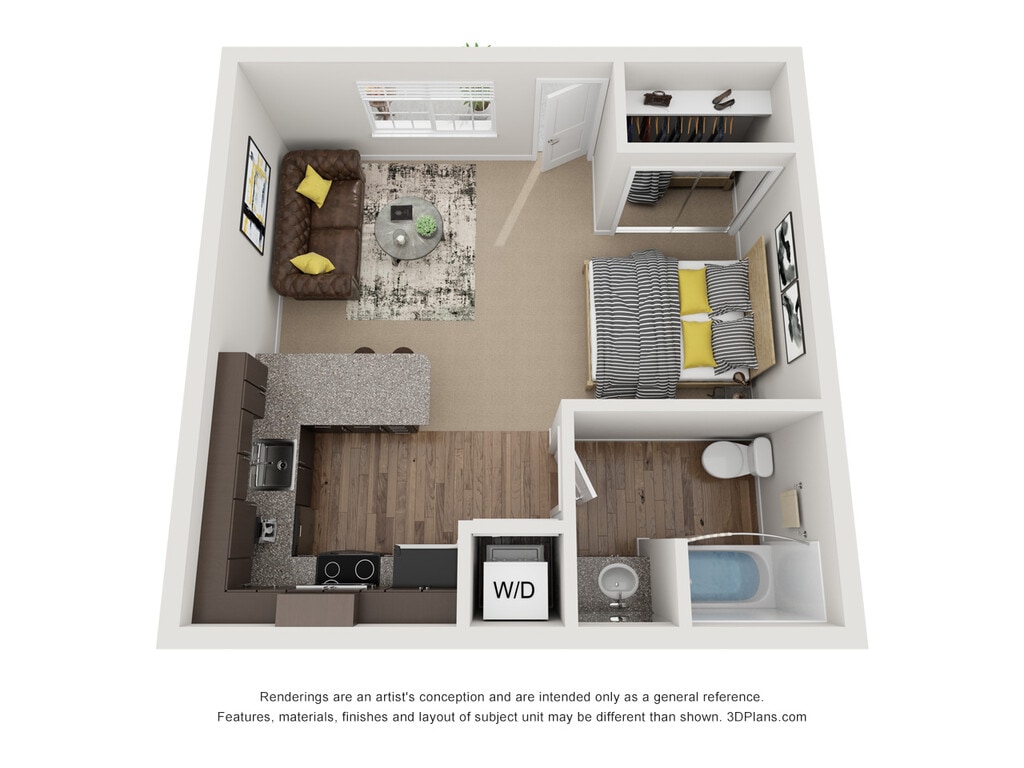 Estudio, 1 Baño, 626 pies²El más grandeEsta opción tiene las unidades más grandes para este modeloGalería del Modelo