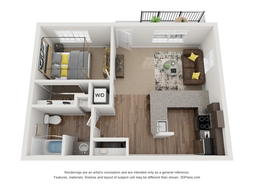 Modelo de apartamento: Residence 61 Dormitorio, 1 Baño, 560 sq ftDisponible November 7, 2025![]()