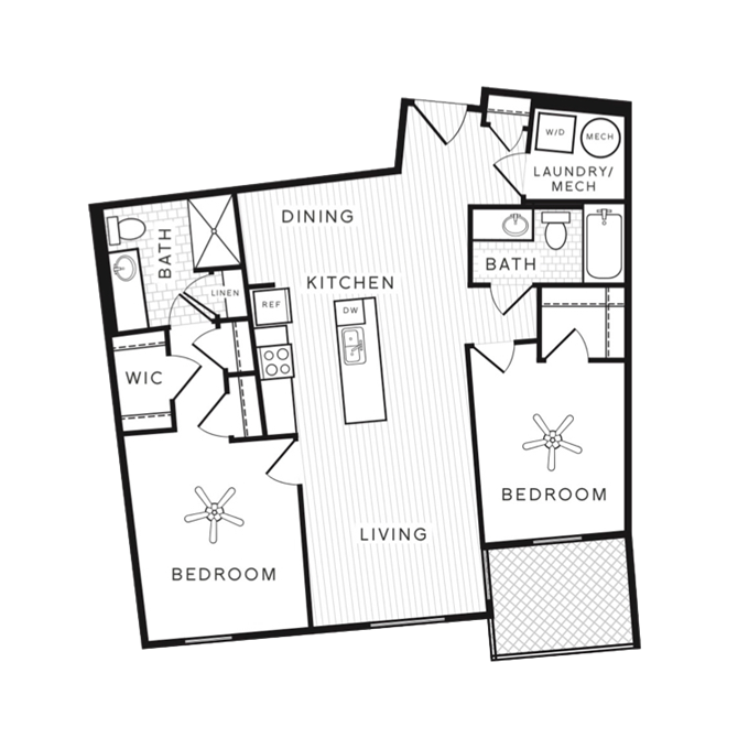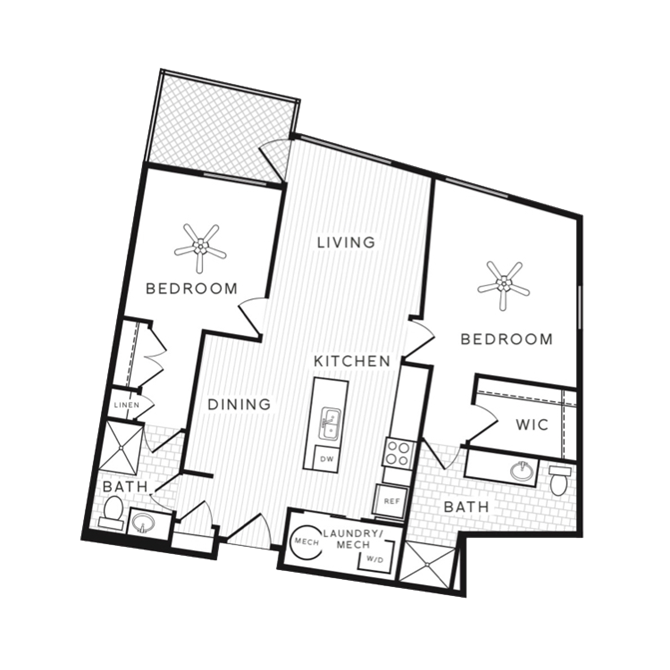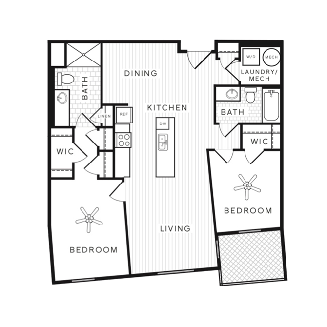Modelo de apartamento: NewportDesde $1,5141 Dormitorio, 1 Baño, 835 sq ftDisponible Ahora![]()