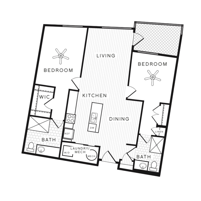 1 Dormitorio, 1 Baño, 835 pies²Disponible AhoraEl más grandeEsta opción tiene las unidades más grandes para este modeloGalería del Modelo