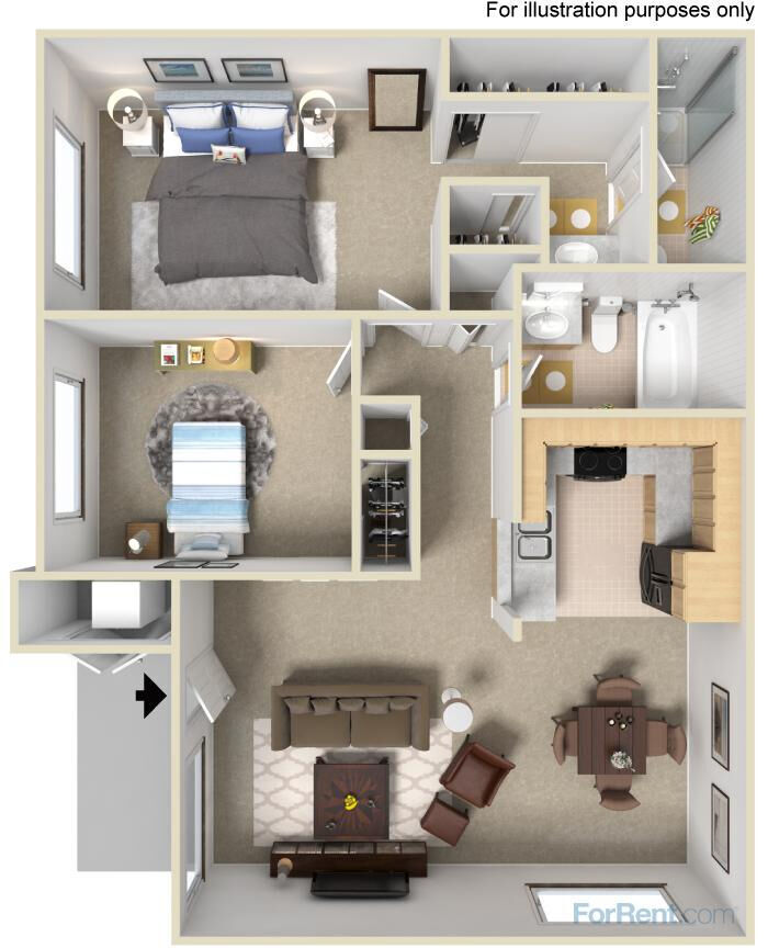 Modelo de apartamento: Two BedroomDesde $2,9132 Dormitorios, 2 Baños, 850 sq ftDisponible Ahora![]()