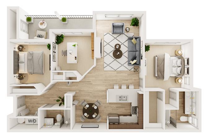 Modelo de apartamento: AshDesde $2,3041 Dormitorio, 1 Baño, 657 sq ftDisponible Ahora![]()
