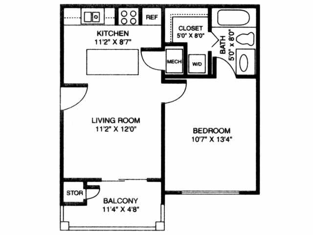 Modelo de apartamento: A1Desde $1,6711 Dormitorio, 1 Baño, 500 sq ftDisponible Ahora![]()