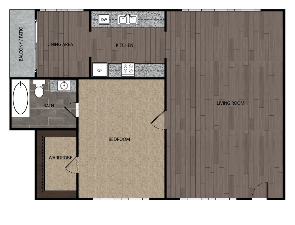 Modelo de apartamento: 1 Bed, 1 Bath, 720-790 sf, (4)1 Dormitorio, 1 Baño, 790 sq ftNo Disponible![]()