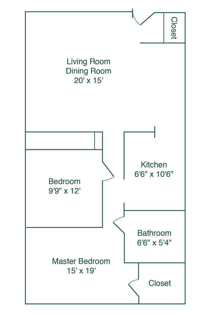 Two Bedroom - Plano 1 Unidad de apartamento: 304Modelo de apartamento: Two Bedroom2 Dormitorios, 1 Baño, 900 sq ftDisponible November 22, 2025Unidad de apartamento: 102Modelo de apartamento: Two Bedroom2 Dormitorios, 1 Baño, 900 sq ftDisponible November 26, 2025