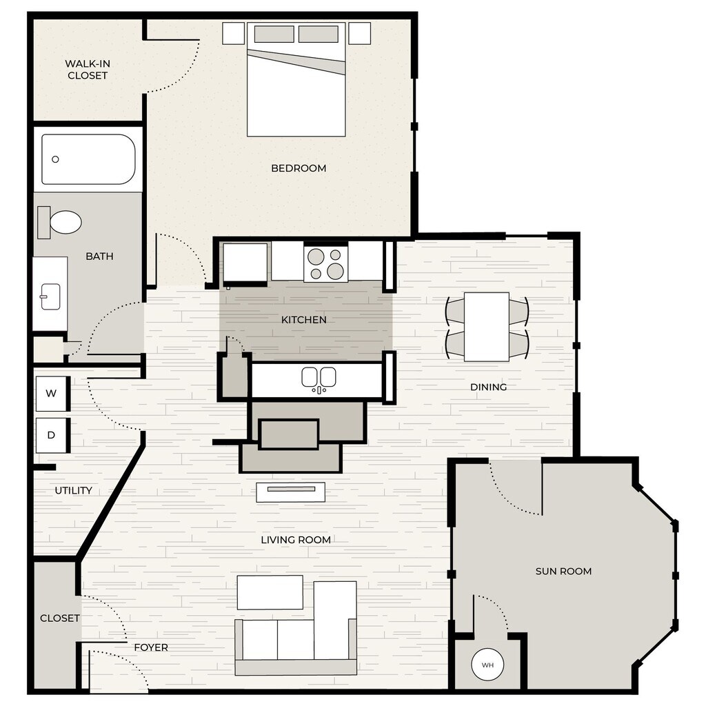 1 Dormitorio, 1 Baño, 1050 pies²Disponible AhoraEl más grandeEsta opción tiene las unidades más grandes para este modeloGalería del Modelo