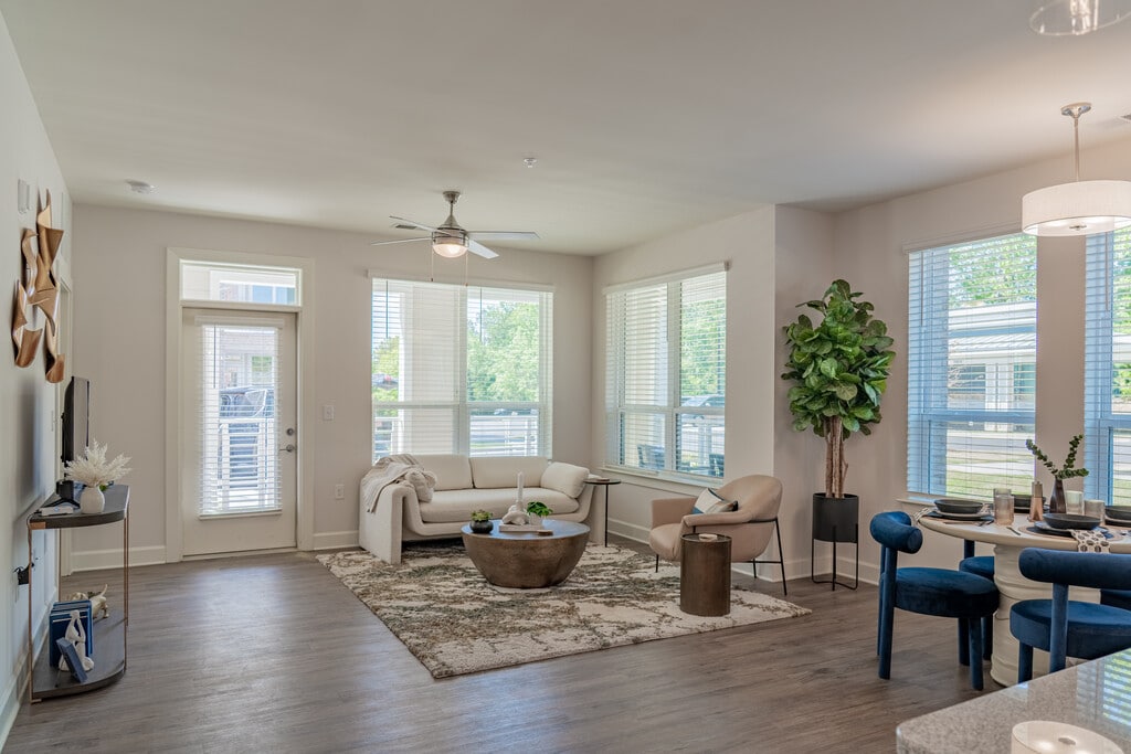 Wakefield Station Apartments in Raleigh, NC, offers modern studio, 1-, and 2-bedroom residences with luxury finishes and smart technology. Each unit features in-unit washer/dryer, keyless entry, and energy-efficient appliances. Community amenities include a resort-style pool, 24-hour fitness center, yoga room, pet spa, Amazon Hub lockers, and electric car charging stations. Conveniently located near Harris Teeter and UNC REX Healthcare Wakefield campus, Wakefield Station combines comfort and convenience in a vibrant North Raleigh setting. Prices start at $1200 per month. Additional fees may apply.