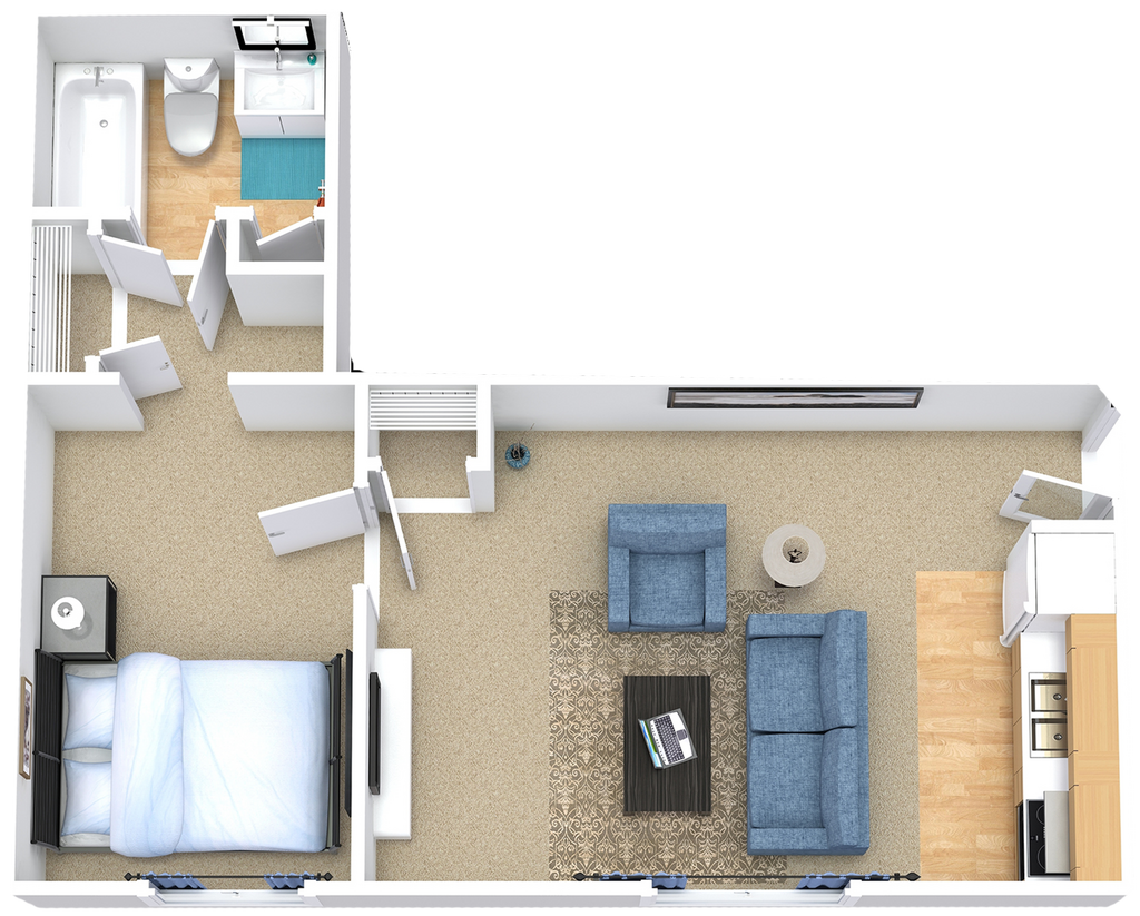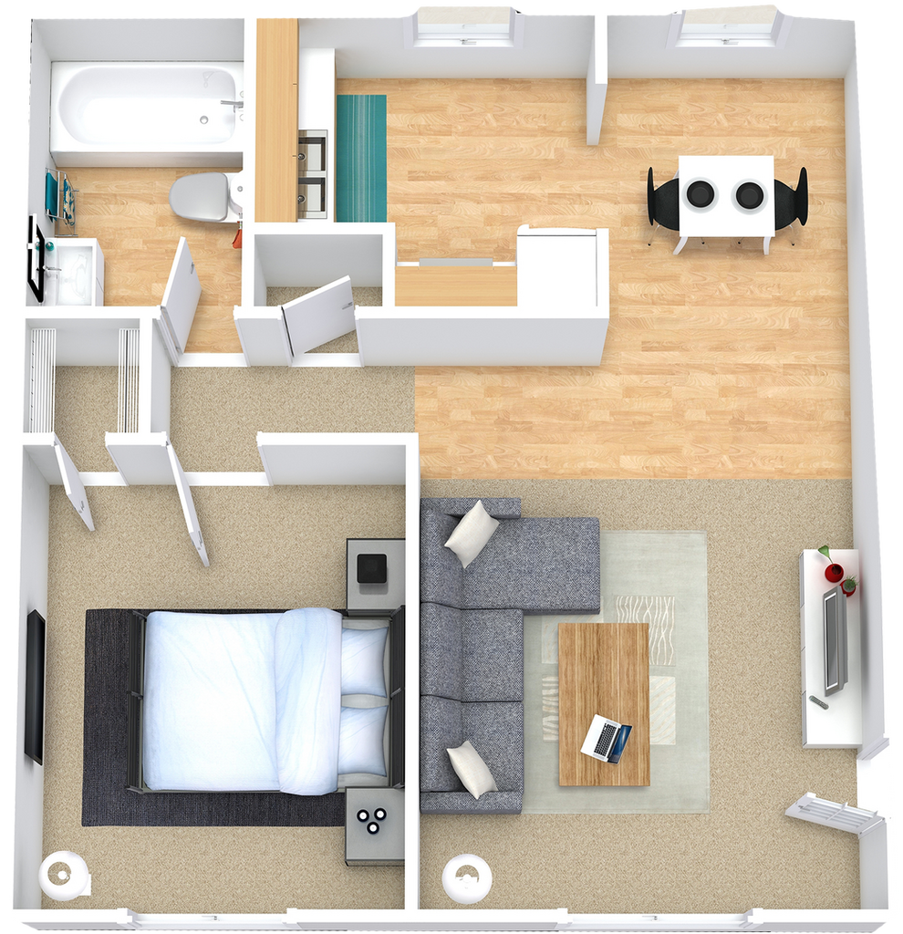 1 Dormitorio, 1 Baño, 530 pies²Disponible AhoraGalería del Modelo