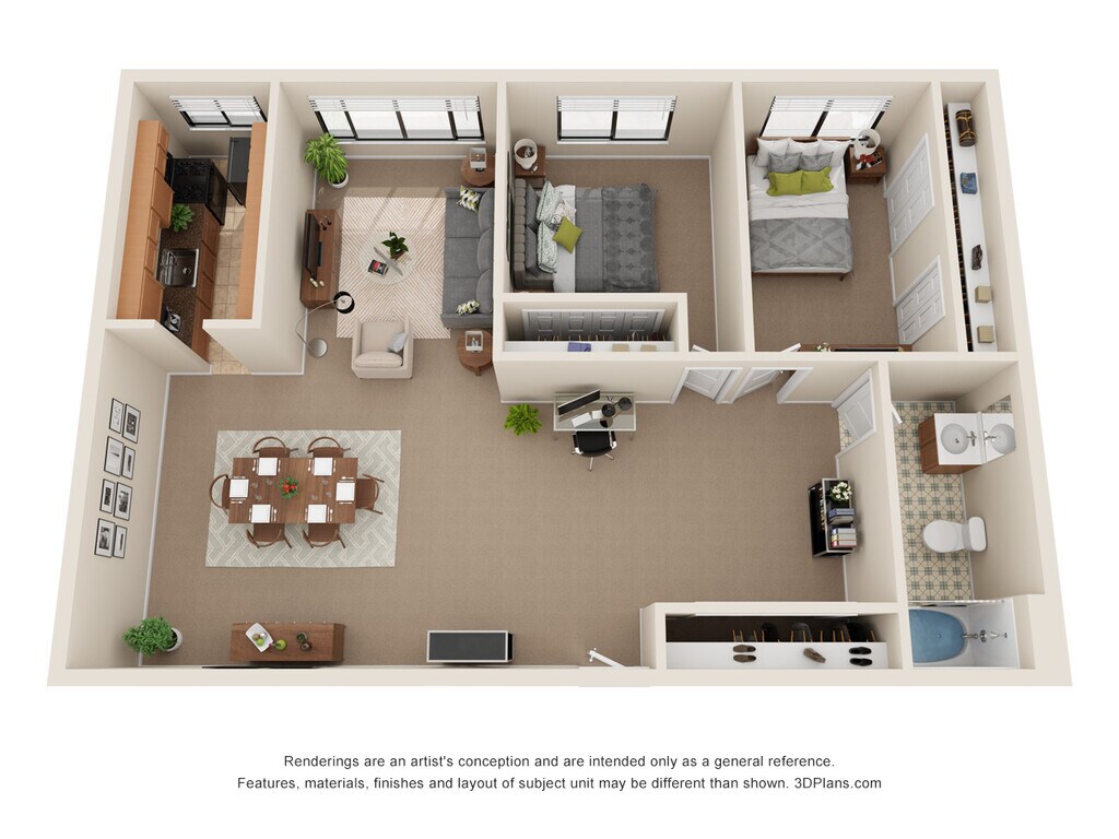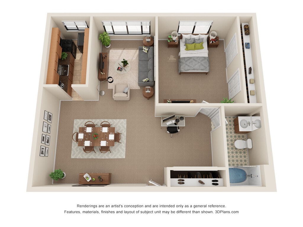 1 Dormitorio, 1 Baño, 750 pies²Disponible AhoraGalería del Modelo