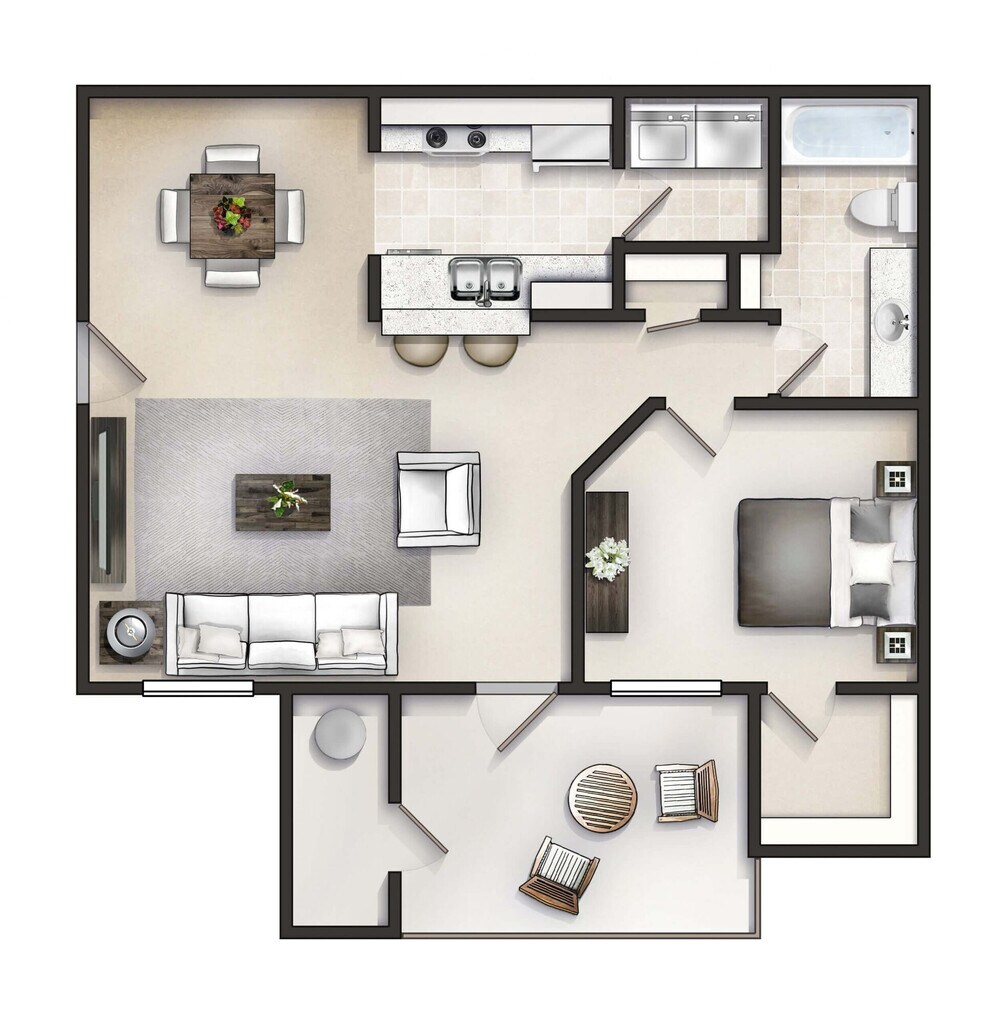 1 Dormitorio, 1 Baño, 998 pies²Disponible AhoraGalería del Modelo