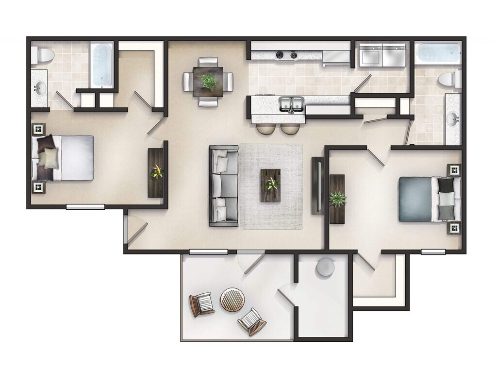 Modelo de apartamento: The OakdaleDesde $1,3252 Dormitorios, 2 Baños, 1280 sq ftDisponible Ahora![]()