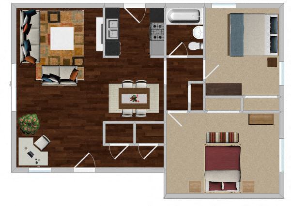 2 Dormitorios, 1 Baño, 850-1166 pies²Disponible AhoraGalería del Modelo