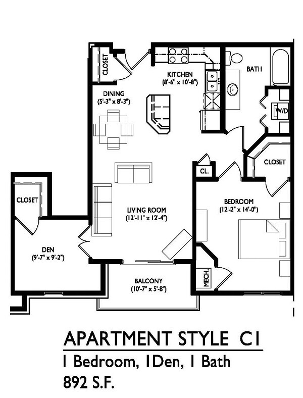 Modelo de apartamento: C3Desde $1,4001 Dormitorio, 1 Baño, 783 sq ftDisponible Ahora![]()