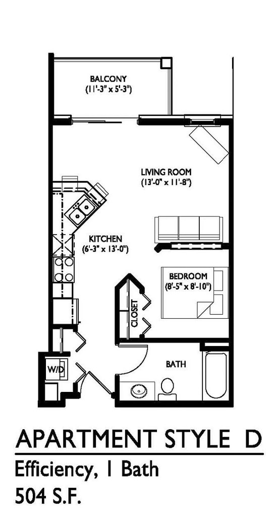 D (Surface Lot Parking Only) - Plano 1 Unidad de apartamento: 1715_304Modelo de apartamento: D (Surface Lot Parking Only)$1,100Estudio, 1 Baño, 504 sq ftDisponible February 1, 20261 Dormitorio