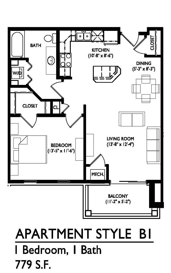 B - Plano 1 Unidad de apartamento: 1723_211Modelo de apartamento: B$1,5451 Dormitorio, 1 Baño, 779 sq ftDisponible January 1, 2026G (ADA Accessible)