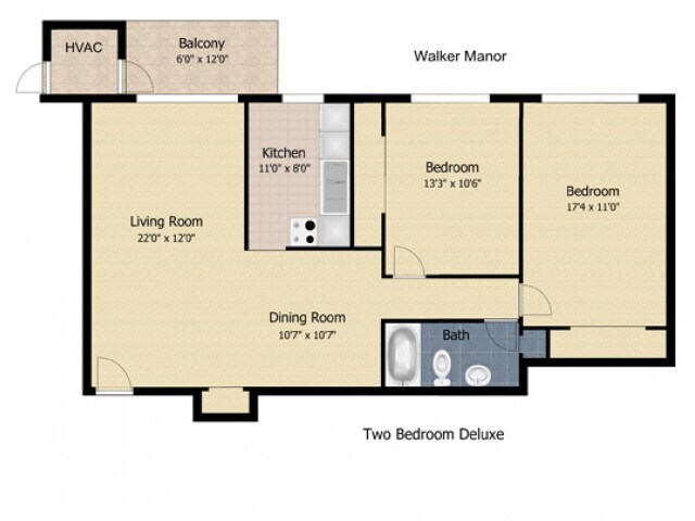 Modelo de apartamento: 2 Bedroom Executive2 Dormitorios, 1 Baño, 880 sq ftDisponible Ahora![]()