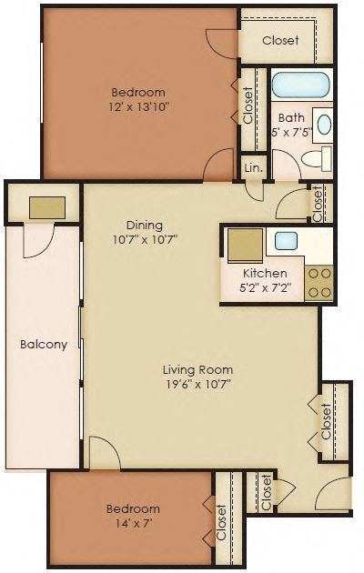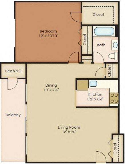 1 Dormitorio, 1 Baño, 738 pies²Disponible AhoraEl más grandeEsta opción tiene las unidades más grandes para este modeloGalería del Modelo