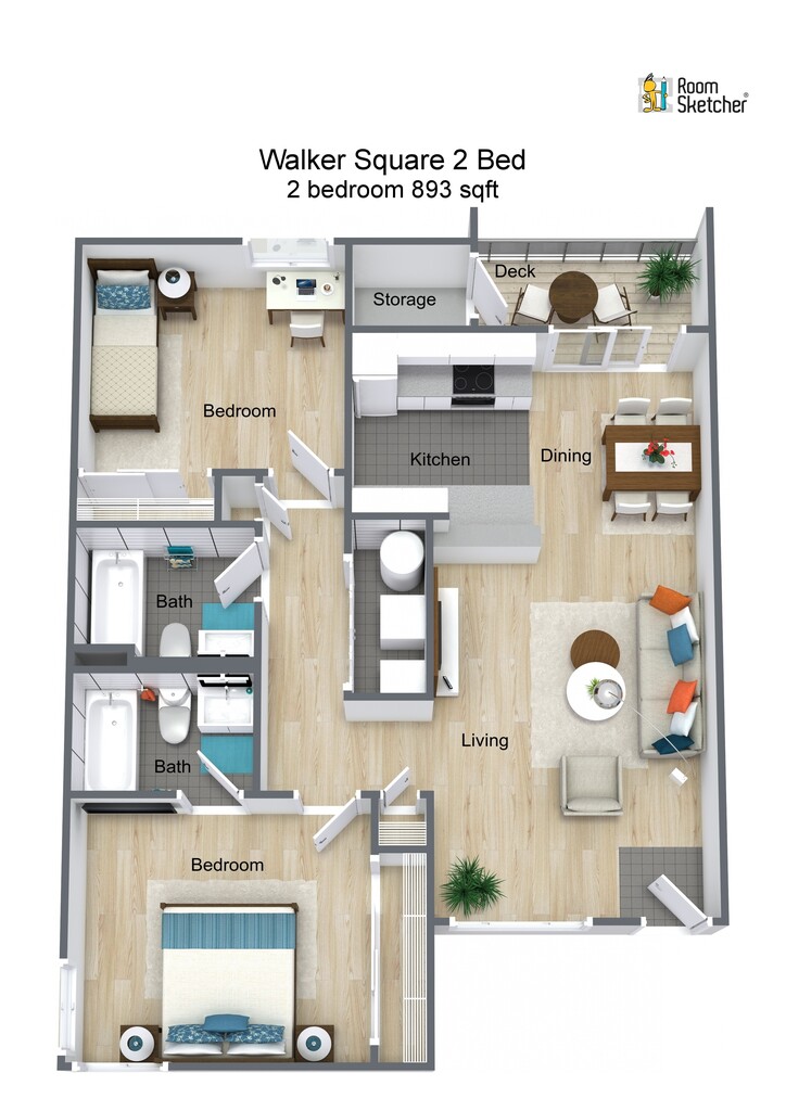 2 Dormitorios, 2 Baños, 893 pies²Galería del Modelo