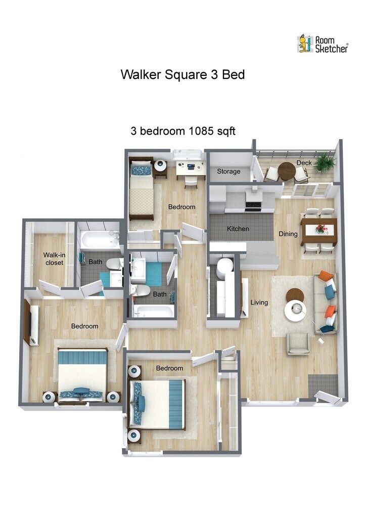 3 Dormitorios, 2 Baños, 1085 pies²Galería del Modelo