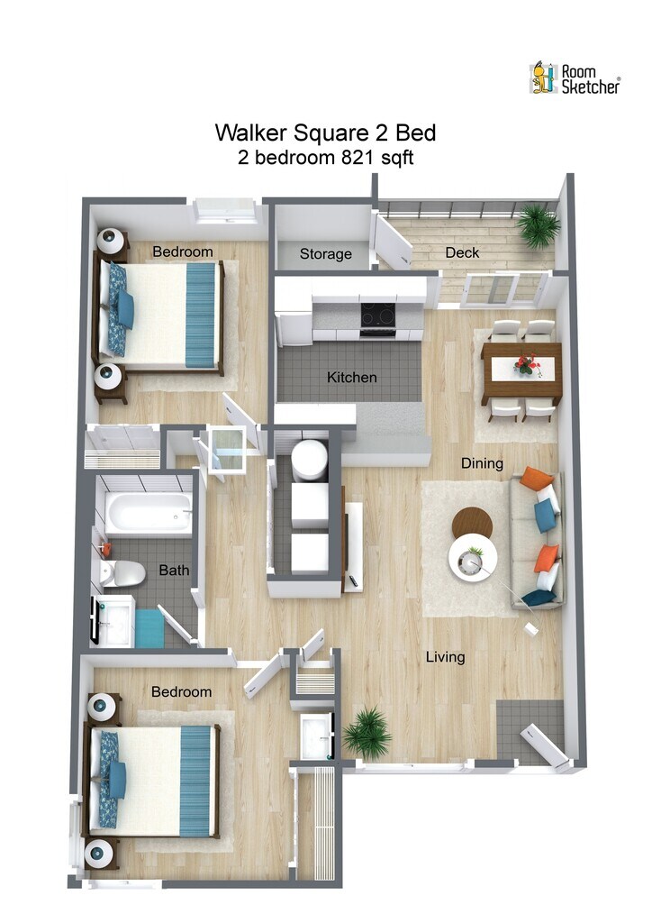 2 Dormitorios, 1 Baño, 821 pies²Galería del Modelo