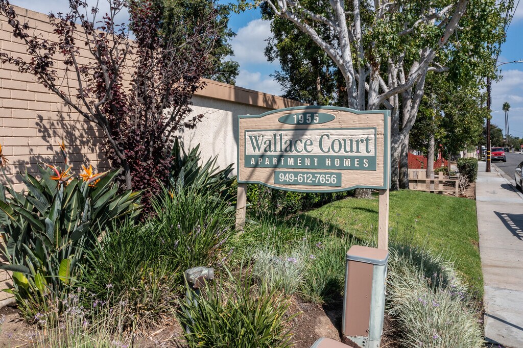 Wallace Court Apartment Homes está ubicado a la salida de Wallace Ave y W.19th Street. Estamos a poca distancia a pie del transporte público, Triangle Square, gimnasio las 24 horas, Trader Joe's, Mothers Market y a poca distancia en auto de Fashion Island y South Coast Metro. Los FWY 55, 405, 5 y 22 también se encuentran muy cerca de nuestro complejo. Newport y Huntington Beach están a poca distancia en auto de nosotros, con senderos desde el parque de la Reserva Nacional Talbert que conducen a los senderos del río Santa Ana y senderos para bicicletas a las playas.