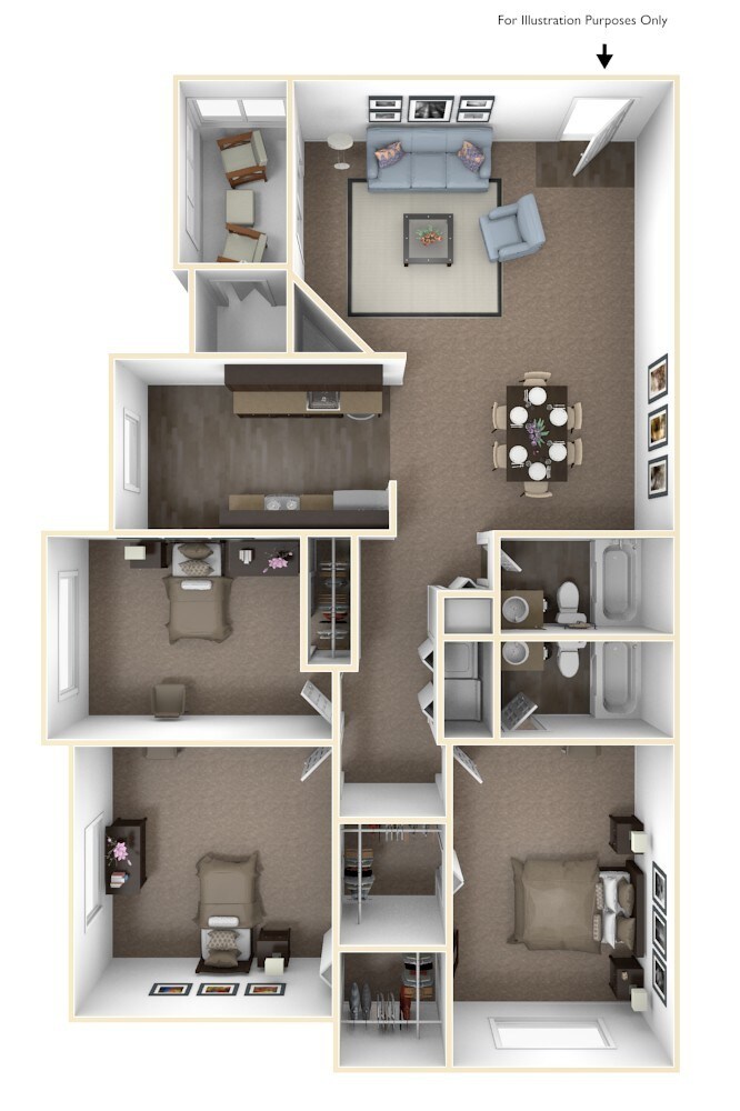 3 Dormitorios, 2 Baños, 1200 pies²Disponible AhoraGalería del Modelo