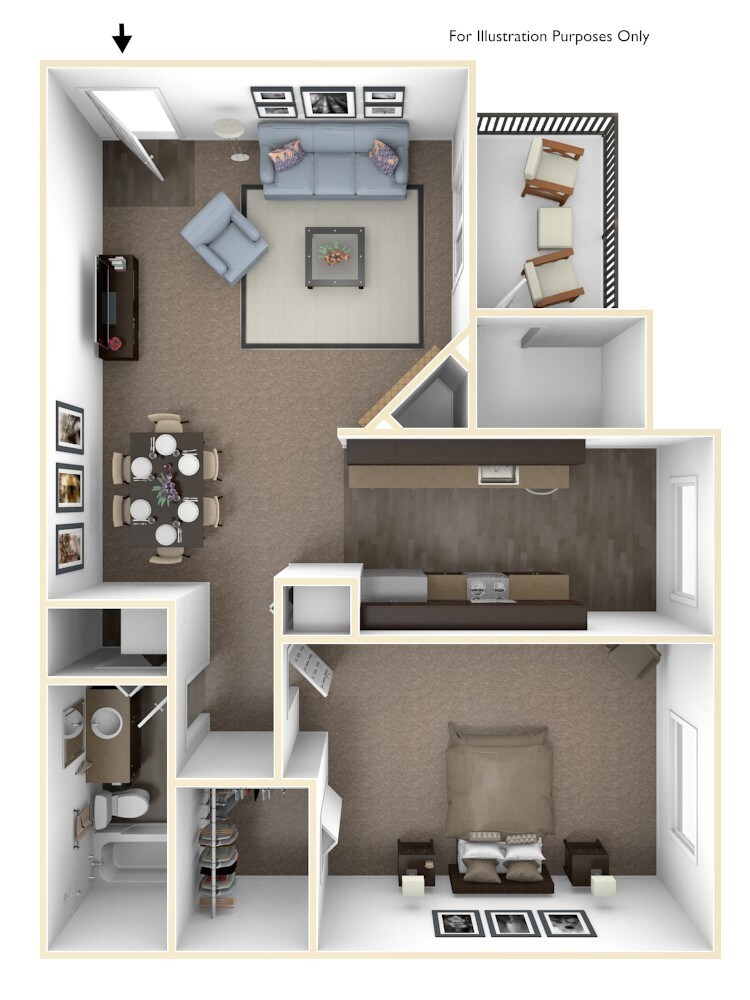 1 Dormitorio, 1 Baño, 825 pies²Disponible Dec 10Galería del Modelo