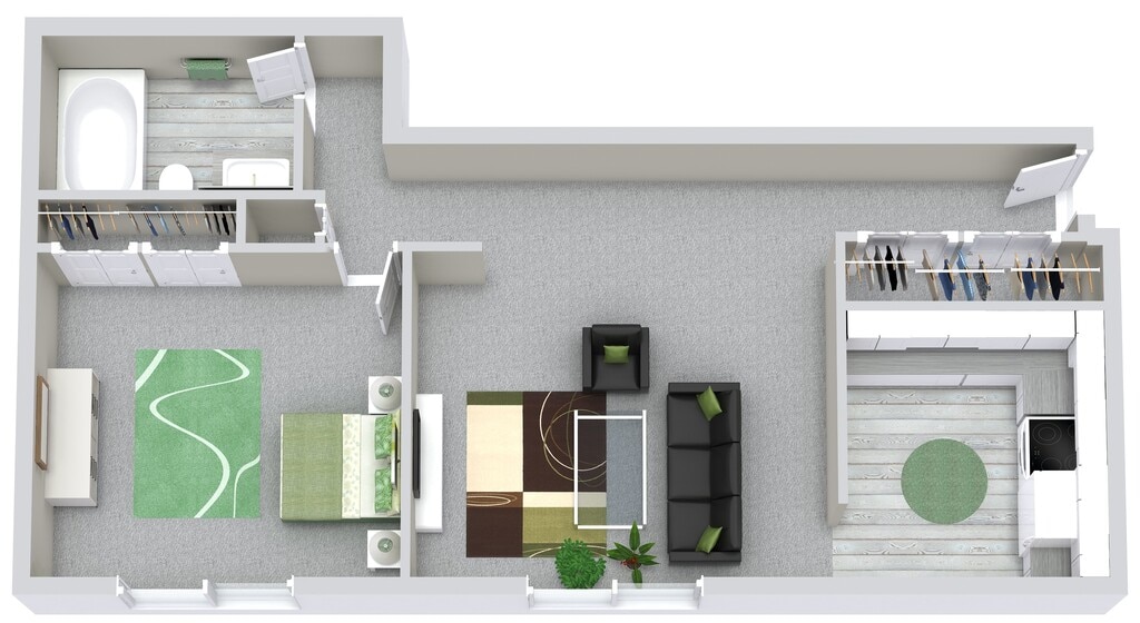 1 Dormitorio, 1 Baño, 750 pies²Galería del Modelo