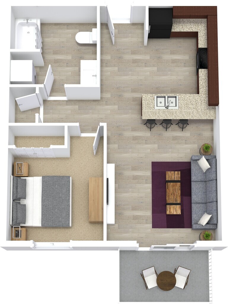 Modelo de apartamento: OakDesde $9621 Dormitorio, 1 Baño, 600 sq ftNo Disponible![]()