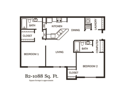 2 Dormitorios, 2 Baños, 1088 pies²Disponible AhoraGalería del Modelo