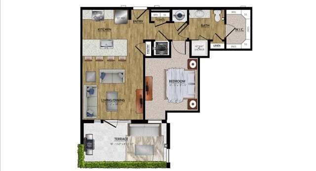 Modelo de apartamento: Minimalist (E)Llame para Precios1 Dormitorio, 1 Baño, 611 sq ftNo Disponible![]()