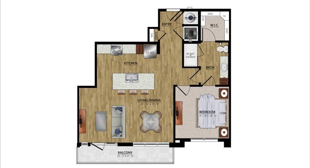 1 Dormitorio, 1 Baño, 611 pies²Galería del Modelo