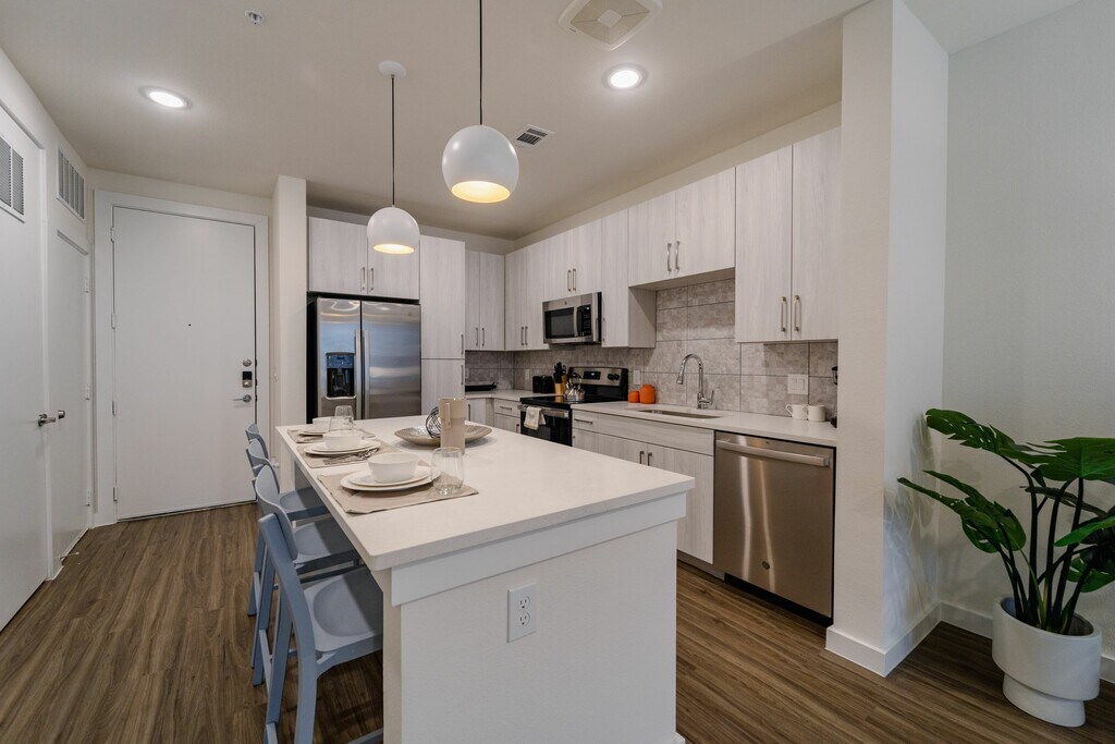 Bienvenido a Warehouse District Apartments, la combinación perfecta de lujo y vida en el centro de Houston. Nuestra nueva residencia, ubicada en el vibrante distrito Warehouse, ofrece apartamentos de un dormitorio meticulosamente diseñados para la sofisticación moderna y la comodidad. Descubra la comodidad de las cocinas gourmet de concepto abierto equipadas con un paquete de electrodomésticos de acero inoxidable, encimeras de cuarzo y salpicadero de azulejos. Los pisos de vinilo de lujo en toda la sala de estar y la cocina crean el ambiente perfecto para una vida refinada. Disfrute de la practicidad de los amplios vestidores con estantes de madera hechos a medida, juegos de lavandería de carga frontal de tamaño completo y llavero con capacidad para llaves móviles. Disfrute del encanto de los techos de 2,5 metros/9 pies, las ventanas que se pueden utilizar y los balcones privados* que realzan las salas de estar. Algunos apartamentos cuentan con islas de cocina, cavas de vino, cabinas de ducha de vidrio sin marco y bañeras de 42 pulgadas, que le dan un toque de opulencia a su vida diaria. Warehouse District Apartments lo invita a elevar su estilo de vida en el corazón del centro de Houston, donde cada detalle, desde la iluminación energéticamente eficiente hasta los elementos de diseño bien pensados, contribuye a una experiencia de vida extraordinaria. Welcome home!