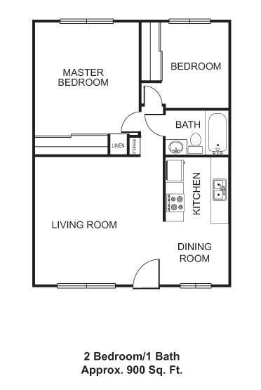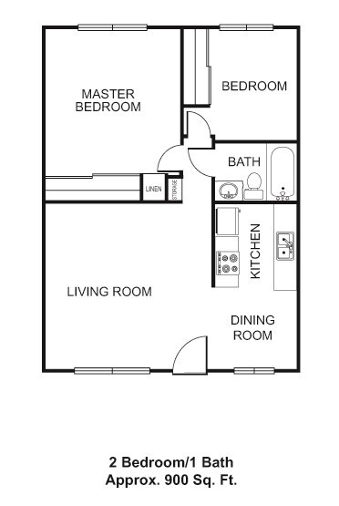 2 Dormitorios, 1 Baño, 900 pies²Galería del Modelo