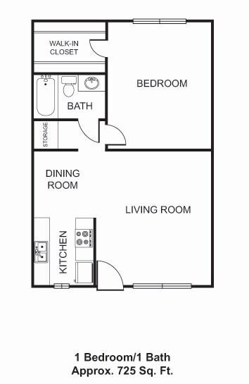 1 Dormitorio, 1 Baño, 725 pies²Galería del Modelo