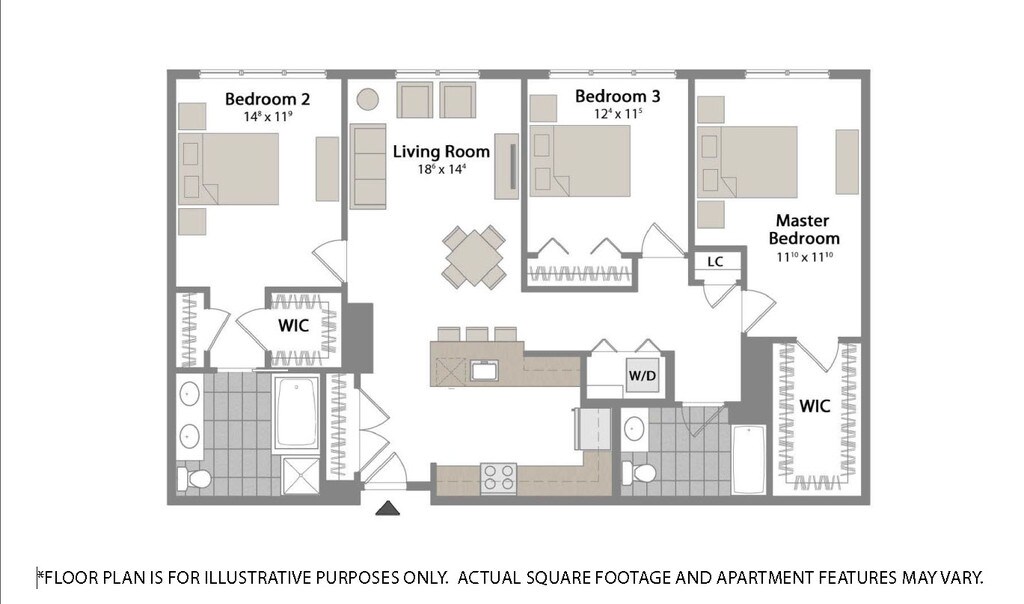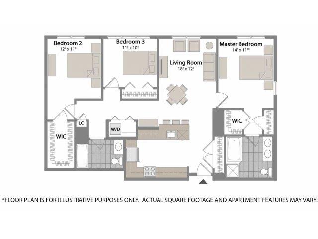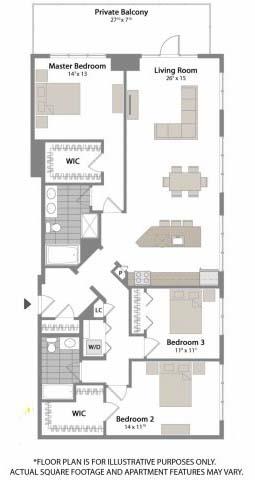 Modelo de apartamento: A3T1 Dormitorio, 1 Baño, 734 sq ftNo Disponible![]()