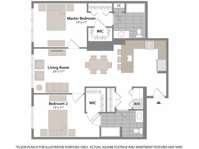 1 Dormitorio, 1 Baño, 734 pies²Disponible AhoraGalería del Modelo