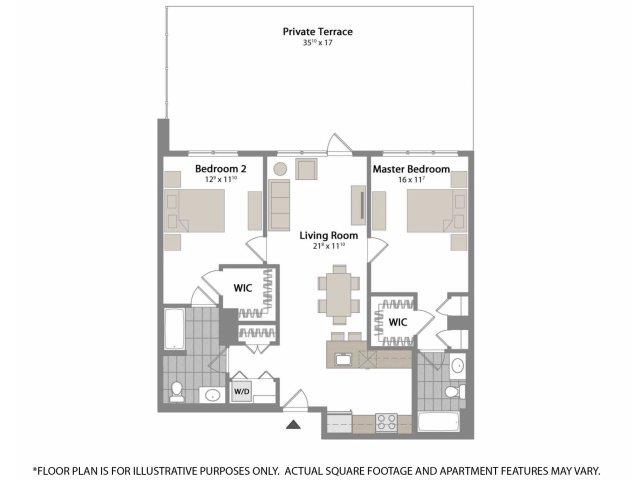 Modelo de apartamento: A21 Dormitorio, 1 Baño, 707 sq ftDisponible January 10, 2026![]()
