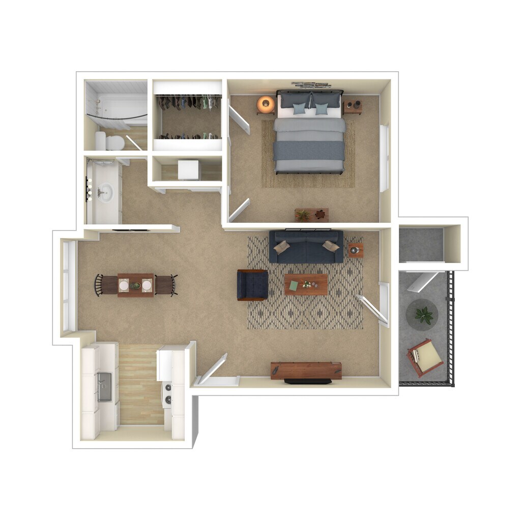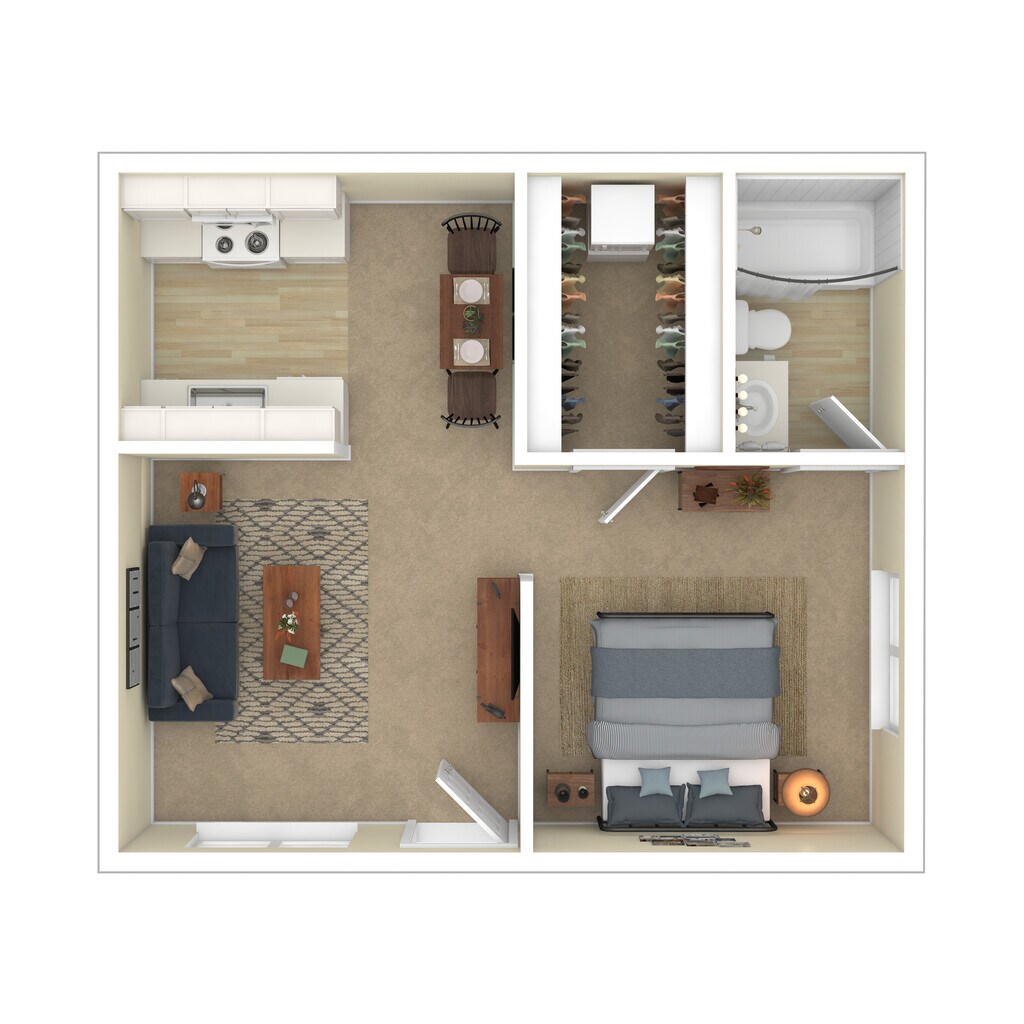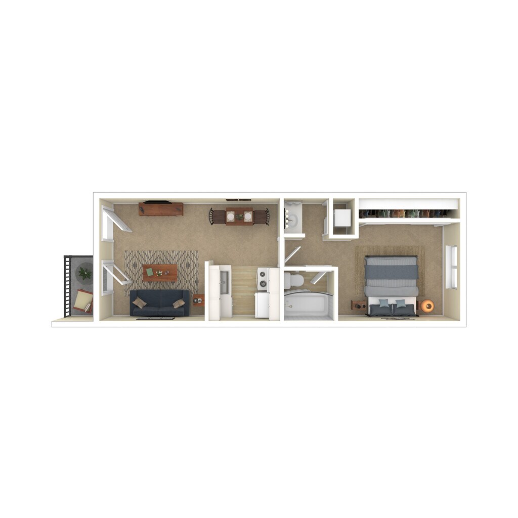 Modelo de apartamento: SnowbirdDesde $9991 Dormitorio, 1 Baño, 584 sq ftDisponible Ahora![]()