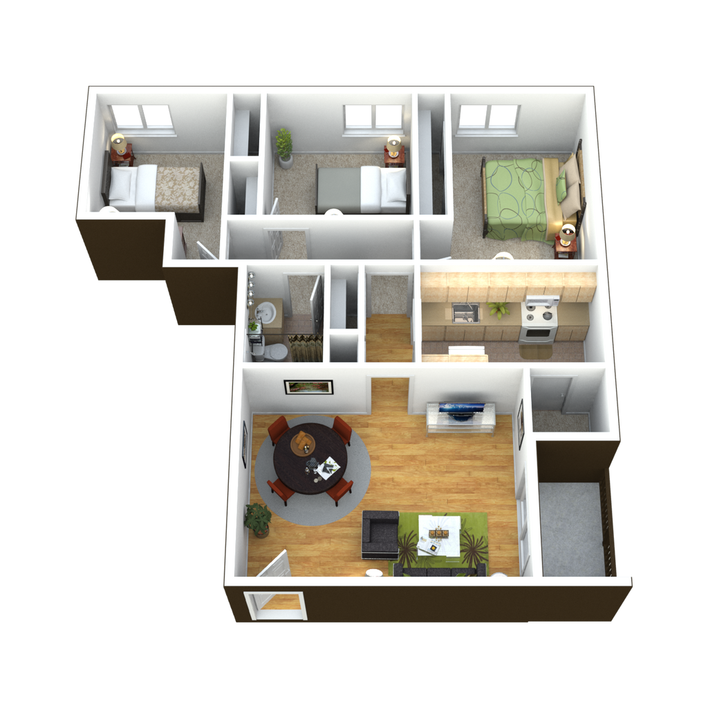 Modelo de apartamento: 3 Bedroom 1 Bath - 7th Street3 Dormitorios, 1 Baño, 900 sq ftDisponible Ahora![]()