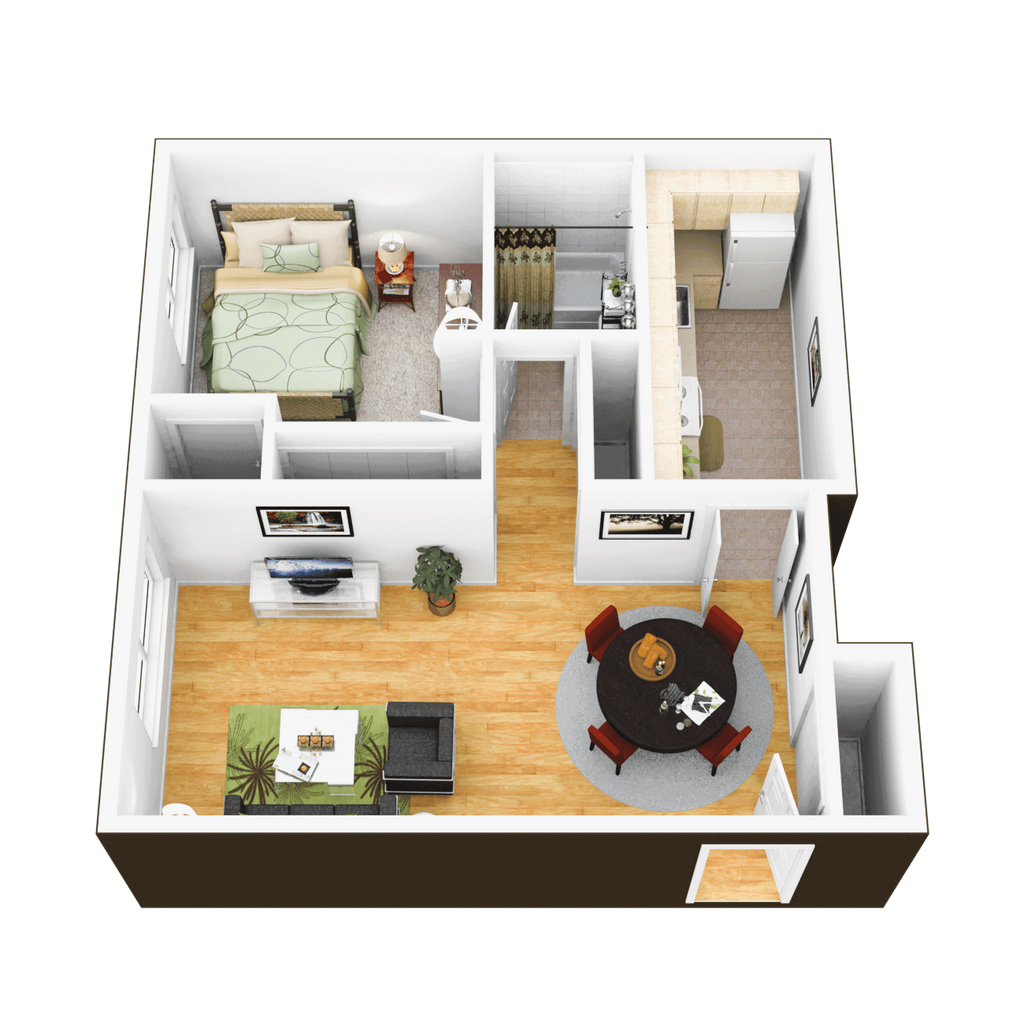 1 Dormitorio, 1 Baño, 500 pies²Disponible AhoraGalería del Modelo