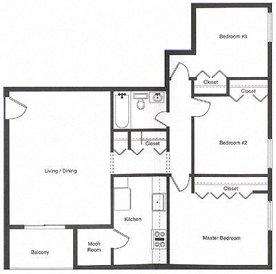 3 Bedroom 1 Bath - 7th Street - Plano 2 Unidad de apartamento: 31207204Modelo de apartamento: 3 Bedroom 1 Bath - 7th Street3 Dormitorios, 1 Baño, 900 sq ftDisponible Ahora3 Bedroom 1 Bath - 6th Street