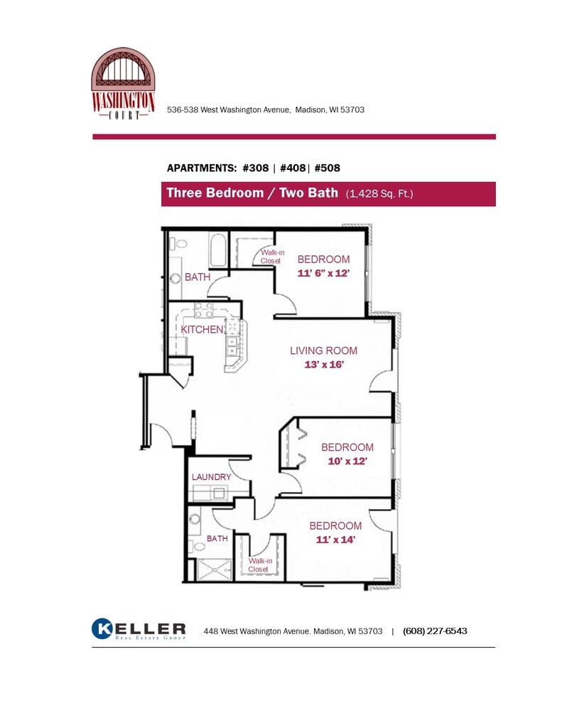 Washington Court Apartments se encuentra en el Barrio Downtown Madison y el código postal 53703 de Madison, WI. Esta comunidad está gestionada profesionalmente por Keller Real Estate Group
