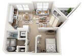 Modelo de apartamento: AppleLlame para Precios1 Dormitorio, 1 Baño, 832 sq ftNo DisponibleApple - Plano 1 Spruce