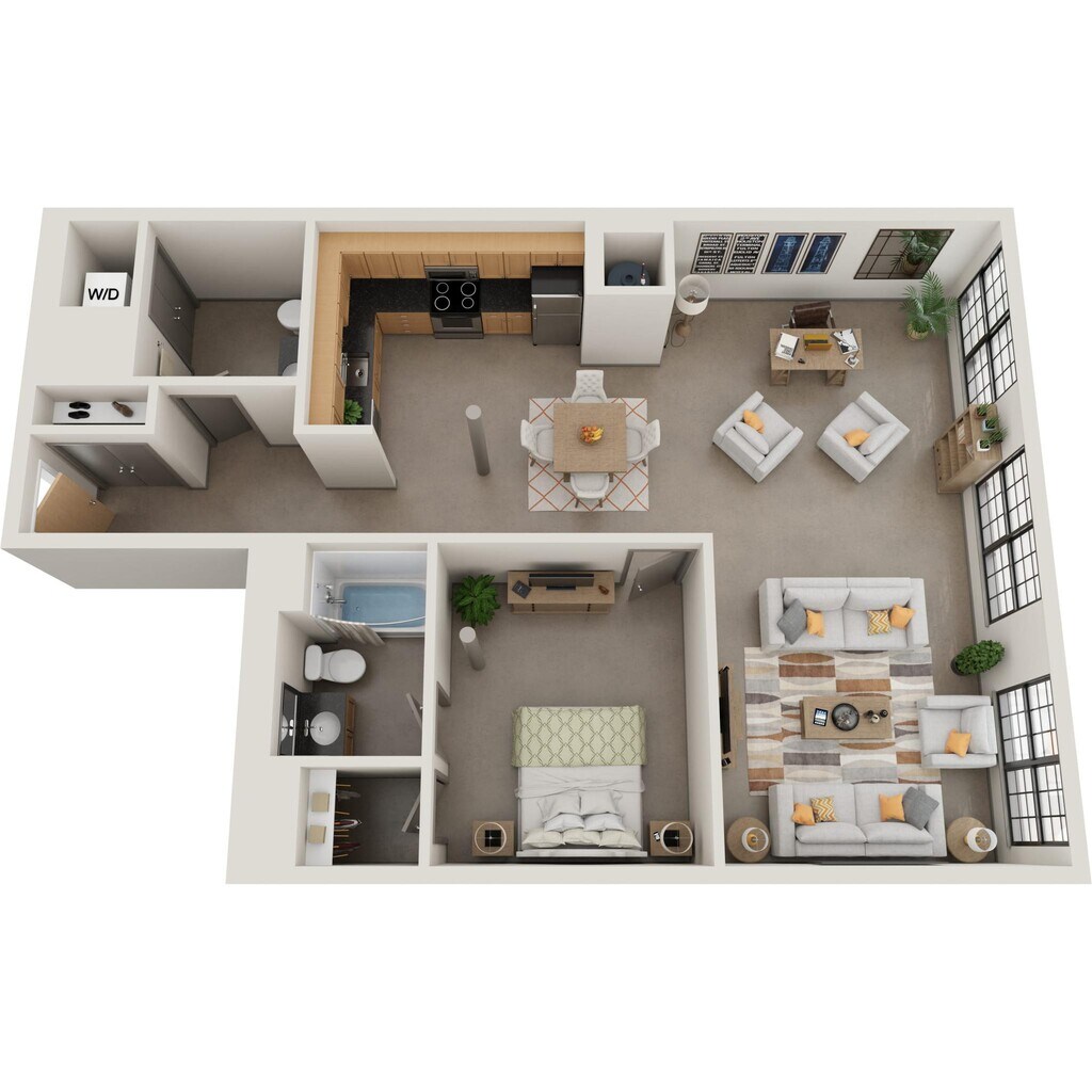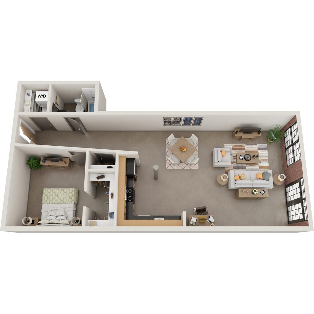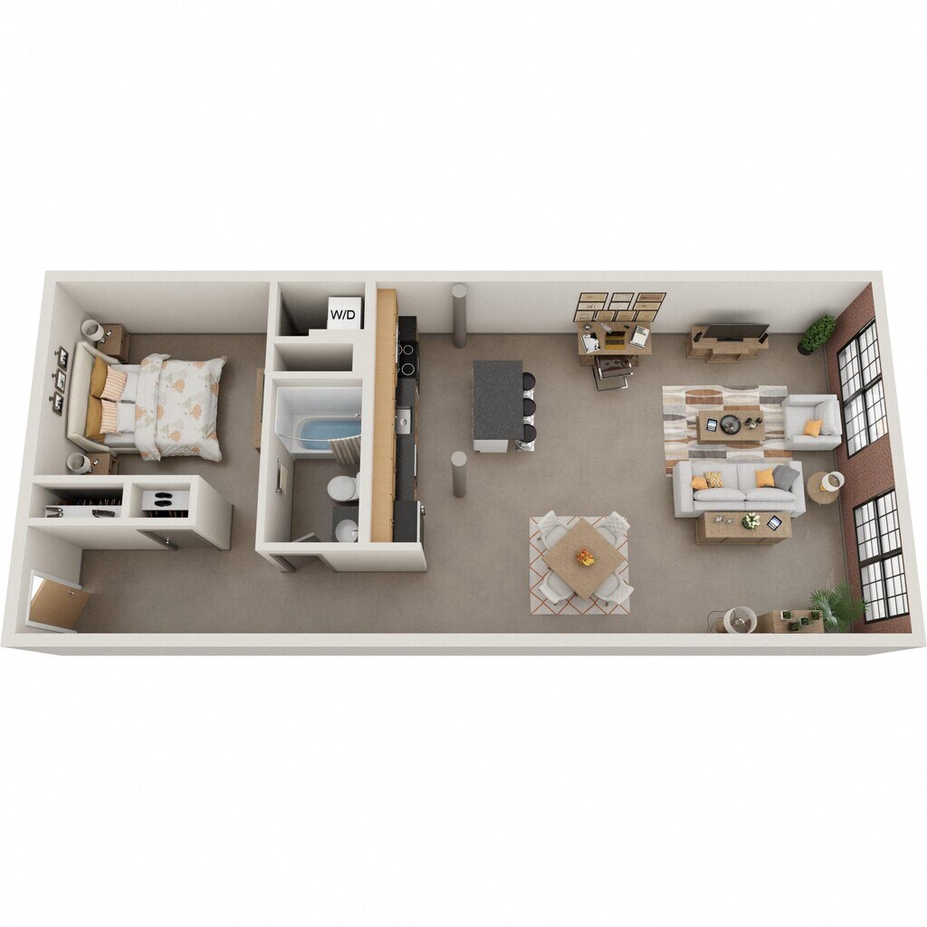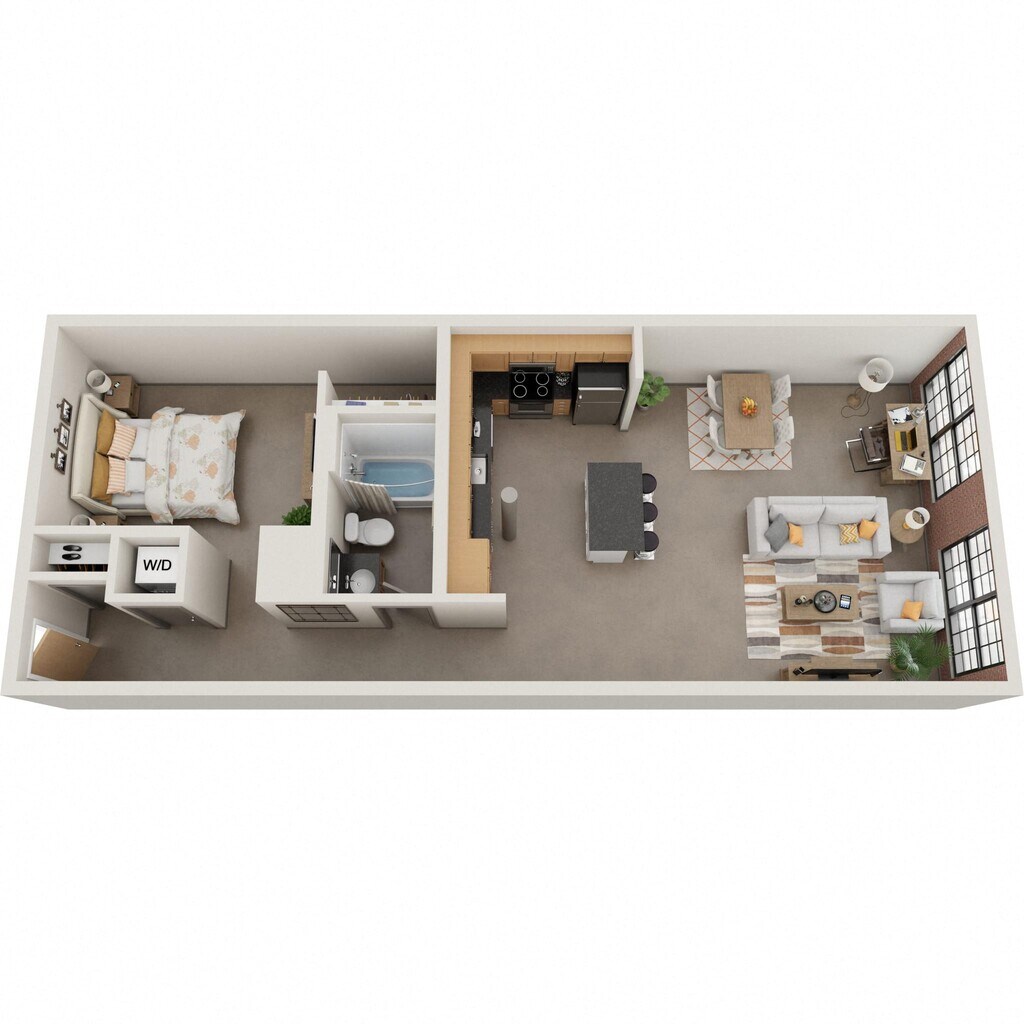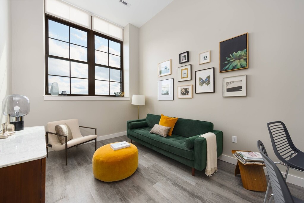 Nuestros estudios y lofts de una y dos habitaciones están diseñados para un estar abierto y flexible con una construcción de calidad y detalles elegantes. Disfruta del sol que entra por las ventanas de gran tamaño, agasaja a tus amigos en la terraza de la azotea, disfruta de una sesión de ejercicios en el gimnasio o conoce a tus vecinos en el salón común, que se completa con televisor de pantalla ancha, billar, área de bar y acceso a Wi-Fi. Nuestros apartamentos son adecuados para vivir, trabajar, relajarse y hacer nuevos amigos. Además, incluso puedes lavar tu ropa en tu propia lavadora y secadora en el apartamento. Así que adelante, adapta el espacio a tus necesidades. Bienvenido al vecindario.