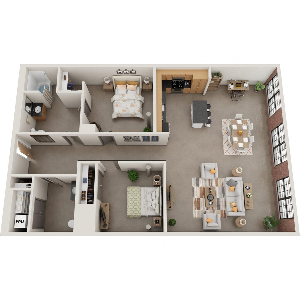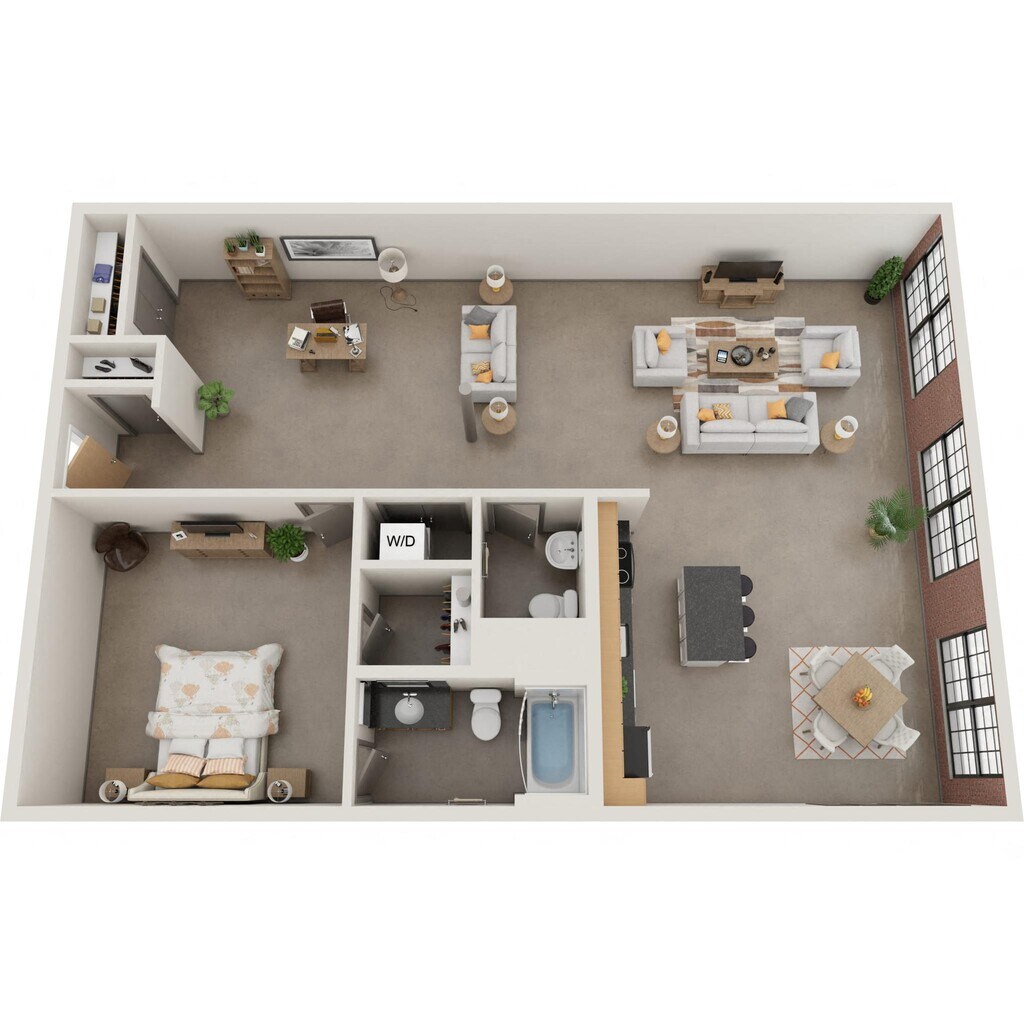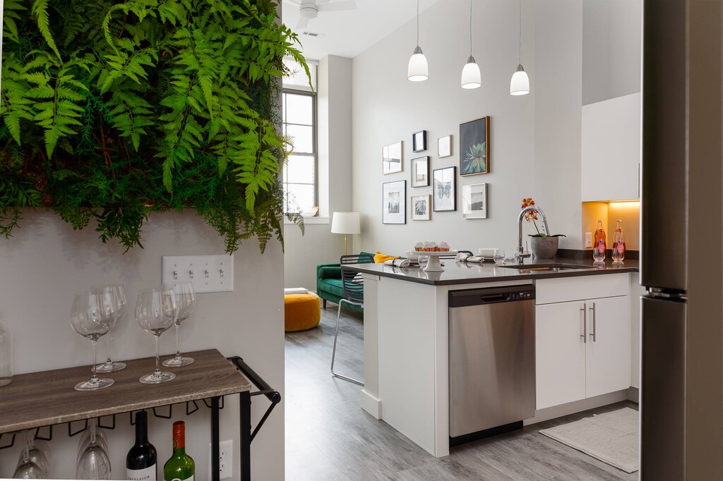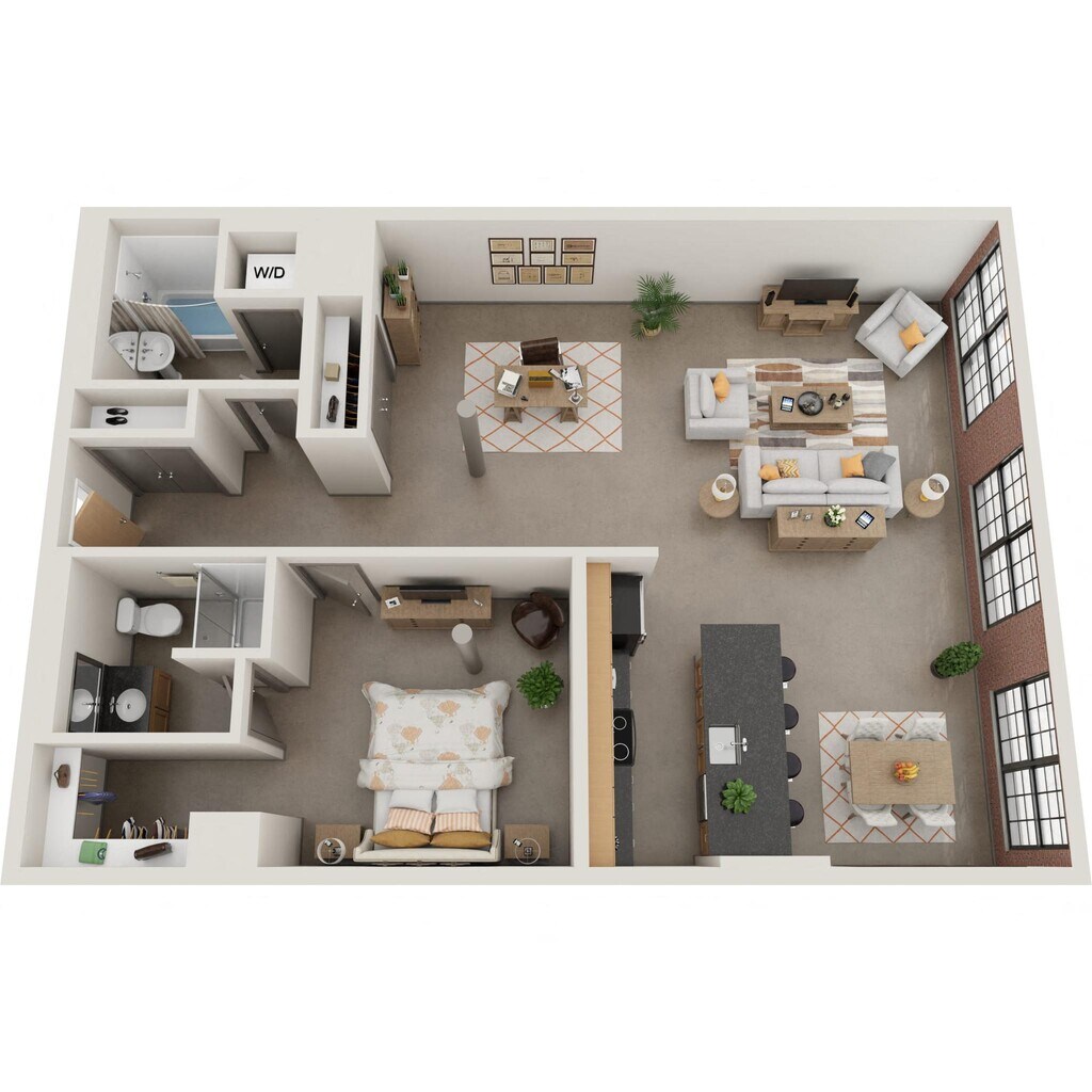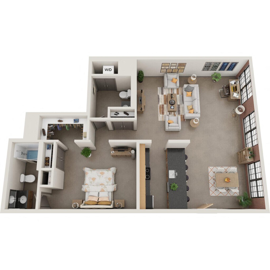 Nuestros estudios y lofts de una y dos habitaciones están diseñados para un estar abierto y flexible con una construcción de calidad y detalles elegantes. Disfruta del sol que entra por las ventanas de gran tamaño, agasaja a tus amigos en la terraza de la azotea, disfruta de una sesión de ejercicios en el gimnasio o conoce a tus vecinos en el salón común, que se completa con televisor de pantalla ancha, billar, área de bar y acceso a Wi-Fi. Nuestros apartamentos son adecuados para vivir, trabajar, relajarse y hacer nuevos amigos. Además, incluso puedes lavar tu ropa en tu propia lavadora y secadora en el apartamento. Así que adelante, adapta el espacio a tus necesidades. Bienvenido al vecindario.