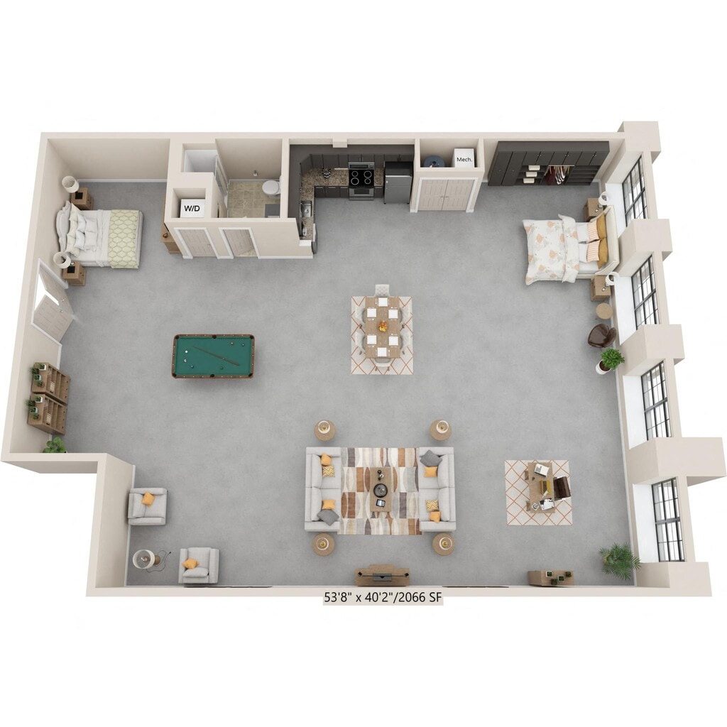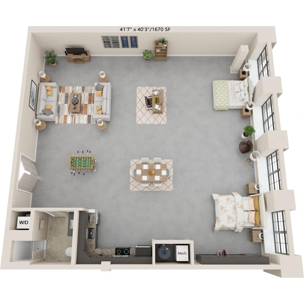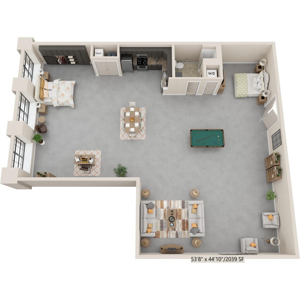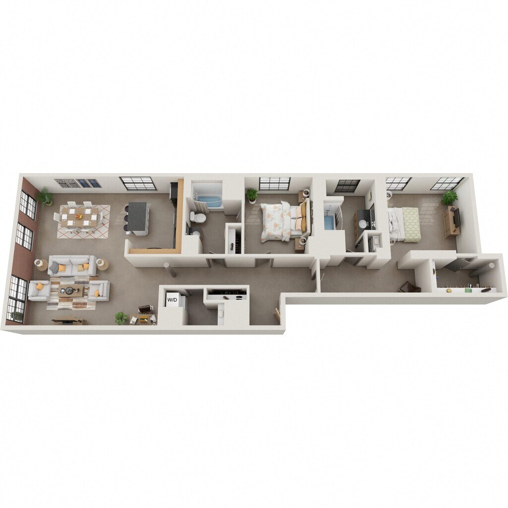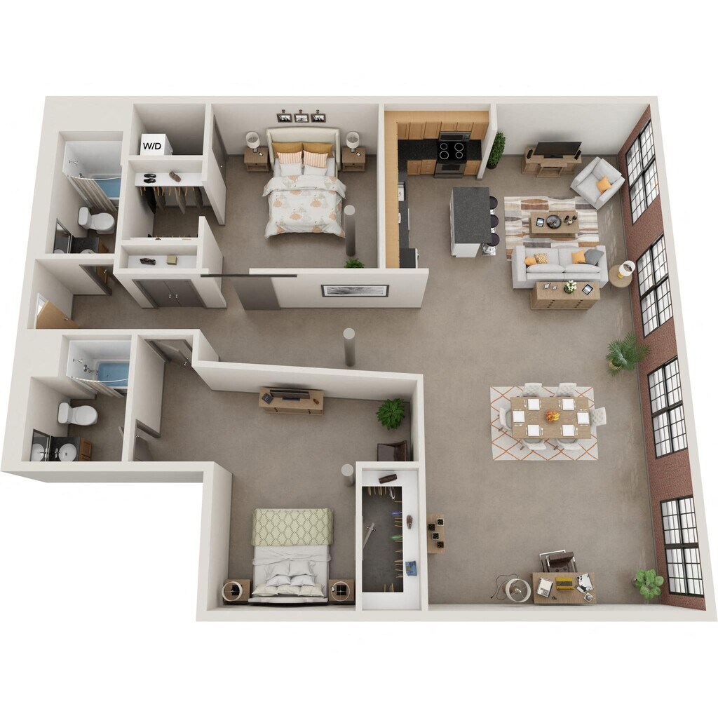 Nuestros estudios y lofts de una y dos habitaciones están diseñados para un estar abierto y flexible con una construcción de calidad y detalles elegantes. Disfruta del sol que entra por las ventanas de gran tamaño, agasaja a tus amigos en la terraza de la azotea, disfruta de una sesión de ejercicios en el gimnasio o conoce a tus vecinos en el salón común, que se completa con televisor de pantalla ancha, billar, área de bar y acceso a Wi-Fi. Nuestros apartamentos son adecuados para vivir, trabajar, relajarse y hacer nuevos amigos. Además, incluso puedes lavar tu ropa en tu propia lavadora y secadora en el apartamento. Así que adelante, adapta el espacio a tus necesidades. Bienvenido al vecindario.