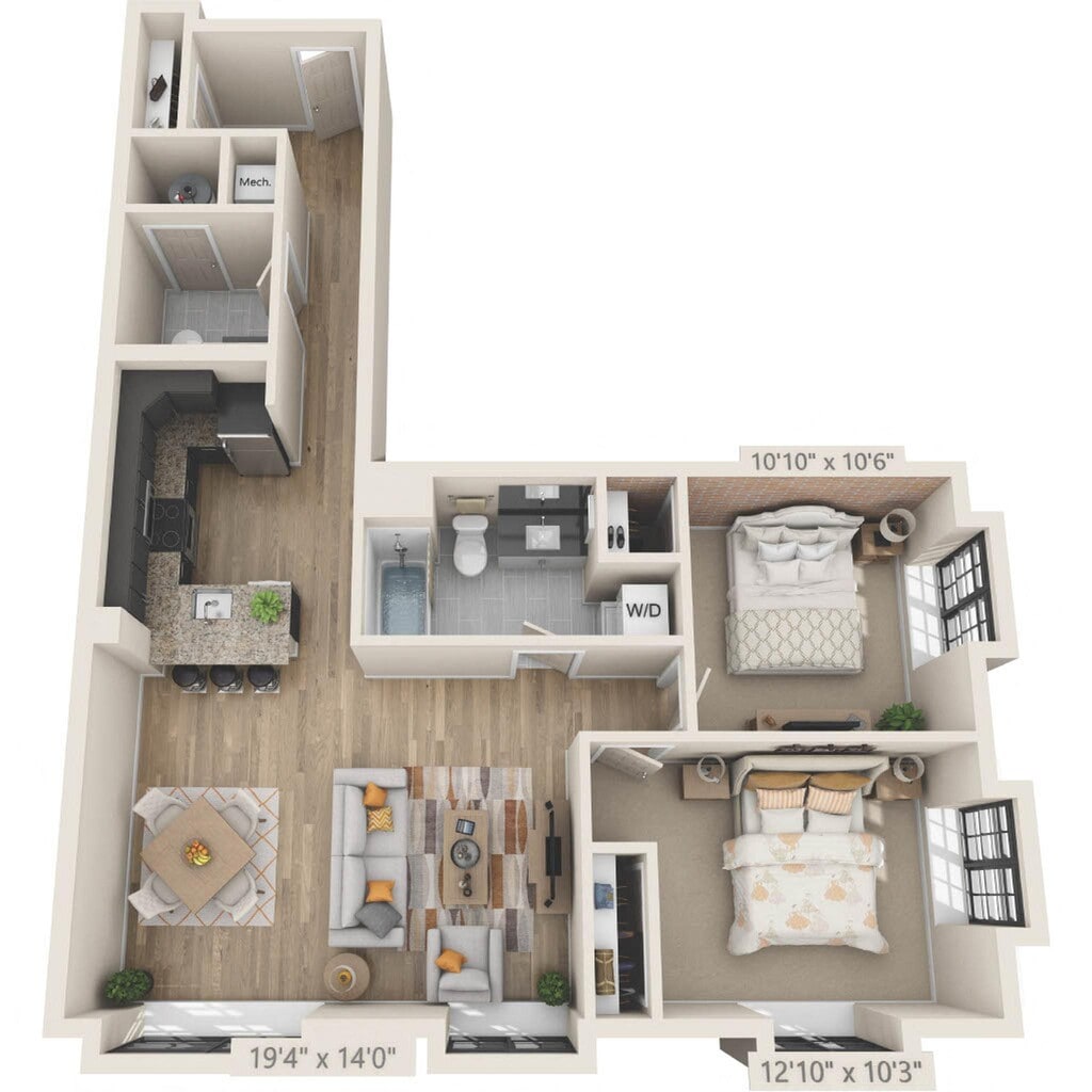 Modelo de apartamento: 1 Bed 1 BathDesde $2,0521 Dormitorio, 1 Baño, 706-876 sq ftDisponible Ahora![]()