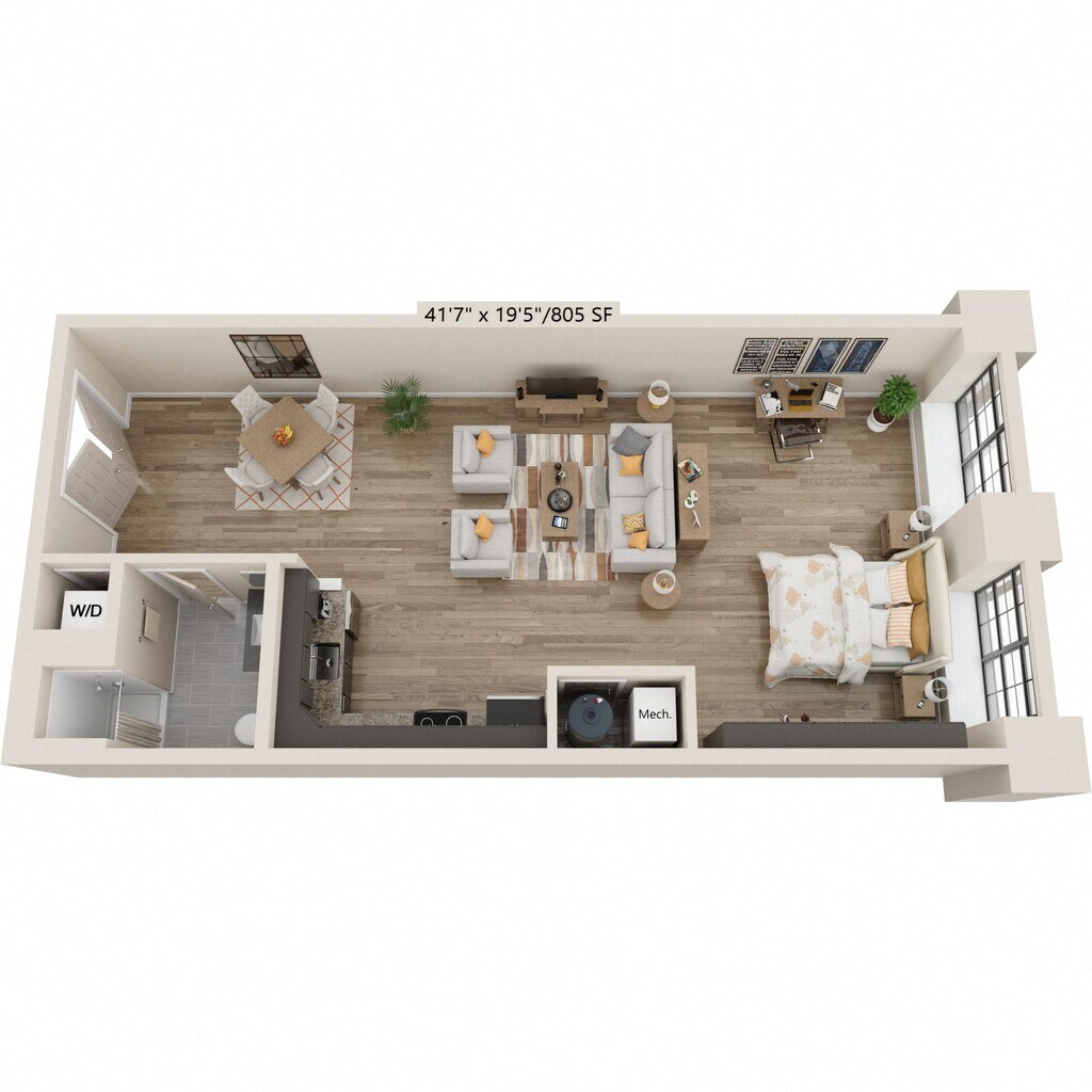 Estudio, 1 Baño, 805 pies²Precio Mensual TotalDisponible AhoraGalería del Modelo